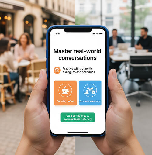 Practice with authentic dialogues and scenarios that mirror everyday situations. From ordering coffee to business meetings, you'll gain the confidence to communicate naturally in any setting.